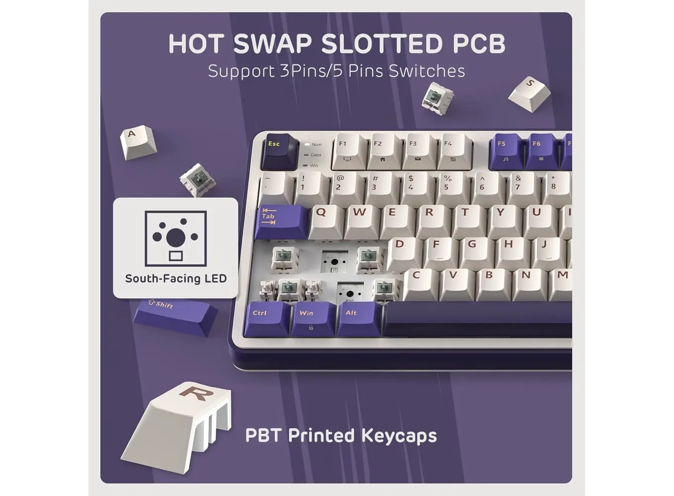Royal Kludge RK S98 RGB მექანიკური კლავიატურა Brown switch ჩამრთველებით იდეალური არჩევანია მათთვის, ვისაც სურს კომფორტული, დახვეწილი და მრავალფუნქციური typing გამოცდილება. Brown switch უზრუნველყოფს რბილ ტაქტილურ უკუკავშირს ზედმეტი ხმაურის გარეშე, რაც საშუალებას გაძლევს კომფორტულად იმუშაო ოფისში, სახლში ან გეიმინგის დროს. ინტეგრირებული Smart Display გაჩვენებს რეჟიმებს, განათების ეფექტებს, კავშირის სტატუსს და სხვა საჭირო ინფორმაციას, რაც კლავიატურას კიდევ უფრო პრაქტიკულს და თანამედროვეს ხდის. მრავალრეჟიმიანი კავშირი — Type-C კაბელი, Bluetooth 5.0 და 2.4GHz — გთავაზობს მოქნილობას, რომ მარტივად გადაერთო სხვადასხვა მოწყობილობას შორის. Hot Swappable კონსტრუქცია საშუალებას გაძლევს სწრაფად შეცვალო ჩამრთველები ინდივიდუალური სტილისა და კომფორტის მიხედვით. RGB განათება მრავალფეროვანი ეფექტებით შექმნილია, რომ სამუშაო სივრცე გაანათოს და შემოტოს ინსპირაცია. Blackberry ფერი კი დამატებით უნიკალურ და ელეგანტურ ვიზუალს ქმნის.