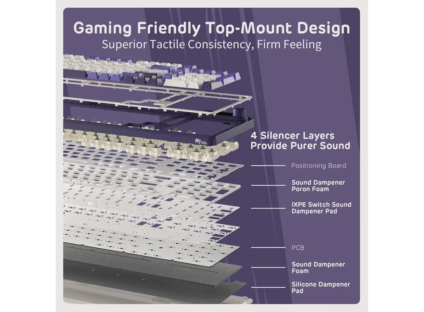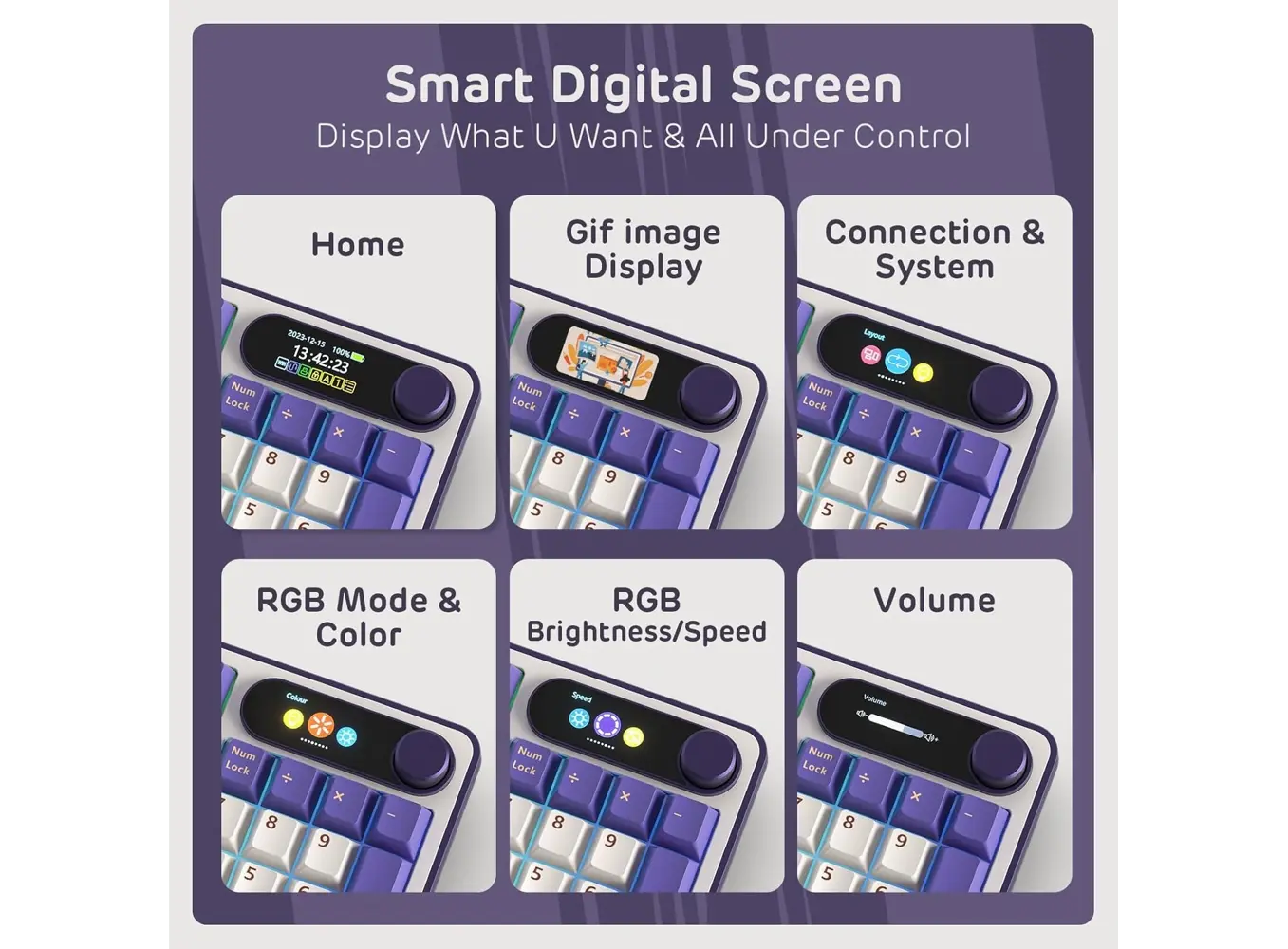 კლავიატურა Royal Kludge RK S98 RGB Mechanical Keyboard, Brown switch, Smart Display, Hot Swappable, Type-C wired, Bluetooth 5.0, 2.4GHz, Blackberry