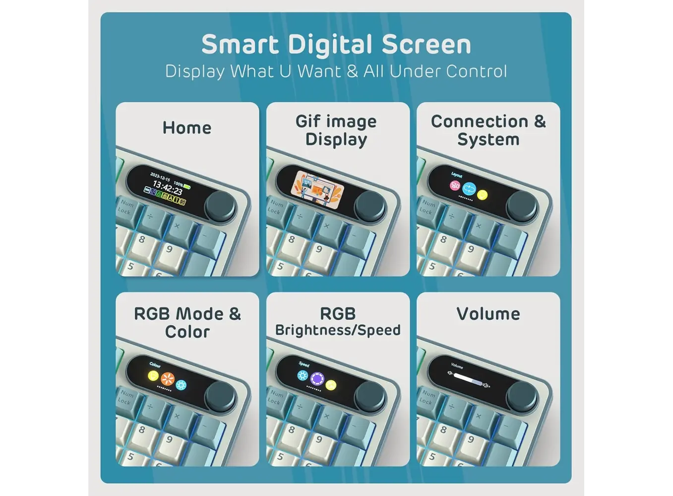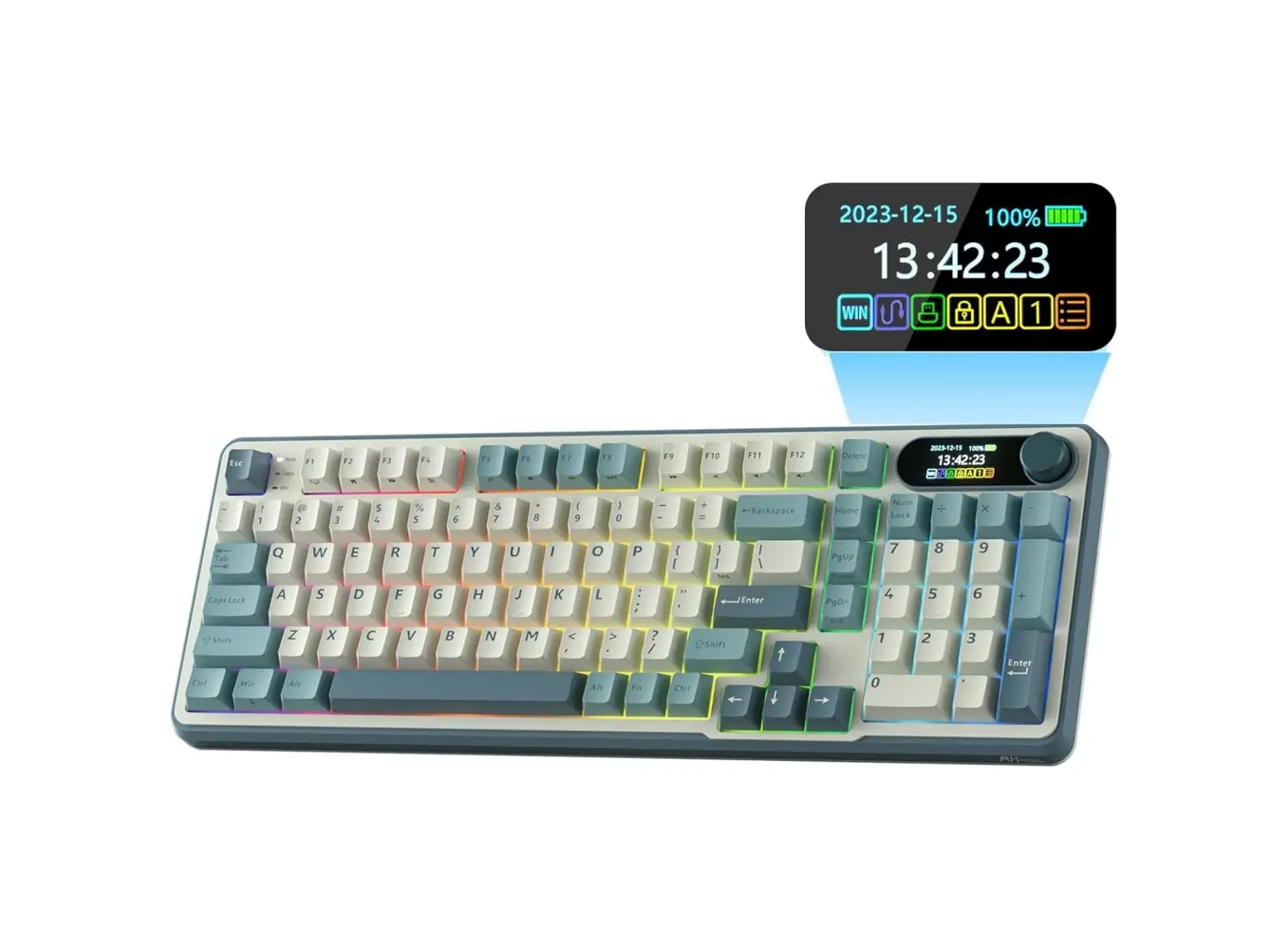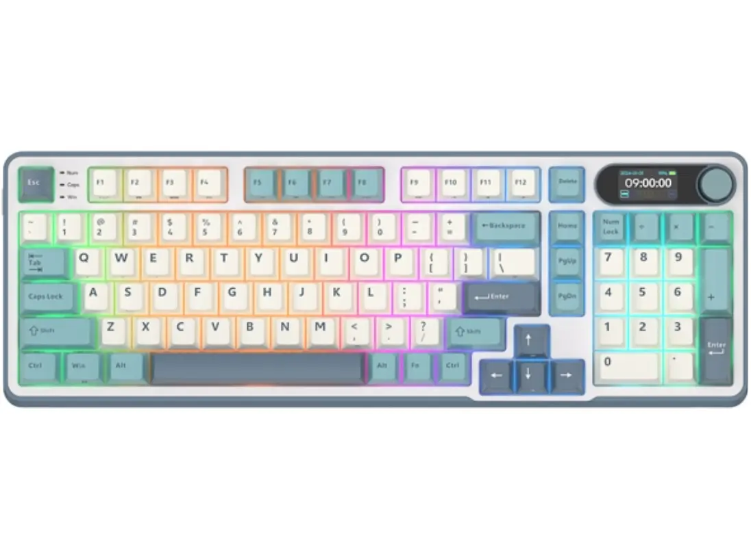 კლავიატურა Royal Kludge RK S98 RGB Mechanical Keyboard, Brown switch, Smart Display, Hot Swappable, Type-C wired, Bluetooth 5.0, 2.4GHz, Light Cloud