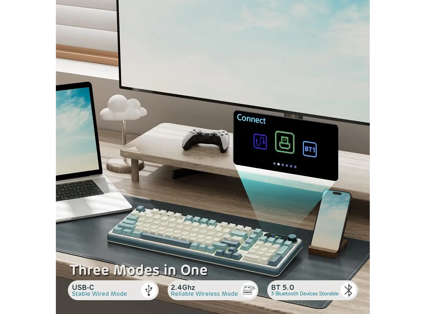 Royal Kludge RK S98 Light Cloud არის მრავალფუნქციური მექანიკური კლავიატურა, რომელიც აერთიანებს კომფორტს, მაღალი ხარისხის შეგრძნებას და თანამედროვე ტექნოლოგიებს. Brown switch უზრუნველყოფს რბილ, ზომიერად ტაქტილურ კლიკს, რაც იდეალურია როგორც ტაიპინგისთვის, ისე გეიმინგისთვის. Hot Swappable სისტემა საშუალებას გაძლევთ მარტივად შეცვალოთ swiჩები სურვილისამებრ, ხოლო RGB განათება მრავალფეროვან ეფექტებს ქმნის და მოაქვს ვიზუალური დინამიკა. Smart Display ფუნქცია გაძლევს შესაძლებლობას ნახო მნიშვნელოვანი ინფორმაცია პირდაპირ კლავიატურაზე. მრავალრეჟიმიანი კავშირი – Type C wired, Bluetooth 5.0 და 2.4GHz – საშუალებას გაძლევს გამოიყენო მოწყობილობა laptop, PC, tablet ან ტელეფონთან სრული კომფორტით. გამძლე კონსტრუქცია, ხარისხიანი სტაბილიზატორები და Cloud Light დიზაინი RK S98-ს აქცევს ერთ-ერთ საუკეთესო ჰიბრიდულ კლავიატურად ყოველდღიური და პროფესიული გამოყენებისთვის.