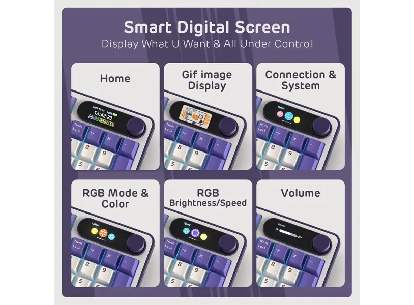 Royal Kludge RK S98 RGB მექანიკური კლავიატურა შექმნილია მათთვის, ვისაც სჭირდება განსაკუთრებული კომფორტი, სტაბილურობა და თანამედროვე ფუნქციები. Chartreuse switch უზრუნველყოფს მკაფიო ტაქტილურ უკუკავშირს და იდეალურ ბალანსს სიჩუმესა და მგრძნობელობას შორის, რაც typing-ის გრძელ სესიებსაც კომფორტულს ხდის. ინტეგრირებული Smart Display გაძლევს სწრაფ წვდომას რეჟიმებზე, კავშირების სტატუსზე და სისტემურ ინფორმაციაზე, რის შედეგადაც მუშაობა უფრო ინტუიციური და დინამიკური ხდება. კლავიატურა მხარს უჭერს მრავალრეჟიმიან კავშირს: Type-C კაბელი, Bluetooth 5.0 და 2.4GHz, რაც საშუალებას გაძლევს თავისუფლად გადაერთო კომპიუტერს, ლეპტოპს ან მობილურ მოწყობილობას შორის. Hot Swappable სისტემა იძლევა ჩამრთველების შეცვლის შესაძლებლობას გარეშე soldering-ის, რაც ამარტივებს პერსონალიზაციას. RGB განათება მრავალფეროვანი ეფექტებით შექმნილია იმისთვის, რომ შენი სამუშაო სივრცე უფრო ამაღელვებელი და გამორჩეული გახდეს.