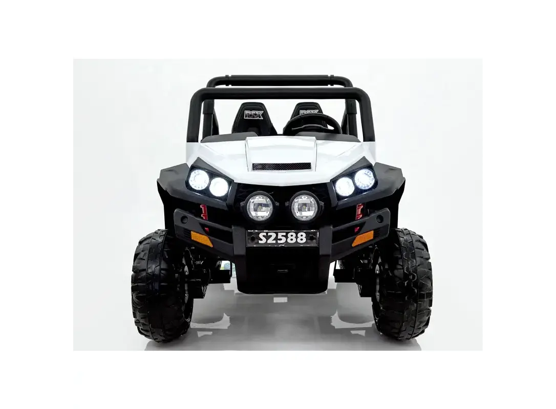 ბავშვის ელექტრო მანქანა S2588-W აერთიანებს კომფორტს, სტილს და უსაფრთხოებას, რაც მას იდეალურ სათამაშოდ აქცევს 3 წლიდან ასაკის ბავშვებისთვის. მოდელი აღჭურვილია რბილი ტყავის სავარძლით და გამძლე კაუჩუკის საბურავებით, რაც უზრუნველყოფს სასიამოვნო და მდგრად სვლას სხვადასხვა ტიპის ზედაპირზე. მანქანას აქვს ავტომატური და დისტანციური მართვის ფუნქცია, რაც მშობელს საშუალებას აძლევს აკონტროლოს მოძრაობა უსაფრთხოდ. ჩამონტაჟებული განათება, მუსიკალური პანელი, USB/MP3 მხარდაჭერა და ხმოვანი ეფექტები კიდევ უფრო ამდიდრებს სათამაშო გამოცდილებას. S2588-W არის გამორჩეული დიზაინის მქონე ელექტრო მანქანა, რომელიც აჩუქებს თქვენს პატარას უამრავ ბედნიერ მომენტს.