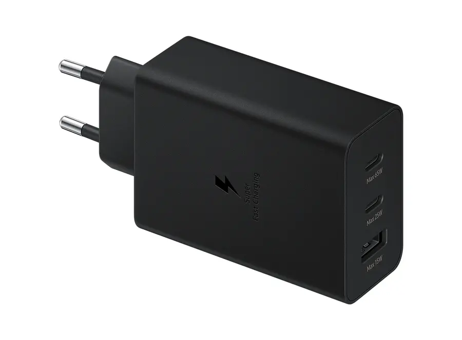 სმარტფონის დამტენი Samsung 65W PD 3.0, 2xUSB-C, USB-A (w/o cable) black (EP-T6530NBEGRU)