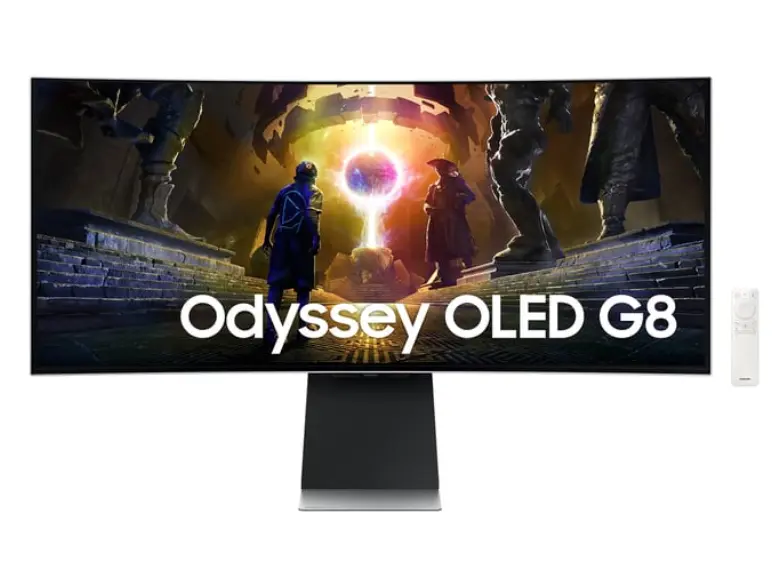 Samsung Odyssey OLED G8 LS34DG852SIXCI არის 34-დუიმიანი მრუდე სათამაშო მონიტორი, რომელიც უზრუნველყოფს ულტრა-ფართო UWQHD (3440 x 1440) რეზოლუციას 21:9 ასპექტის თანაფარდობით. მისი OLED პანელი უზრუნველყოფს ღრმა შავ ფერებს და ცოცხალ ფერებს, ხოლო 1800R მრუდი დიზაინი ქმნის იმერსიულ ვიზუალურ გამოცდილებას. მონიტორი აღჭურვილია 175Hz განახლების სიხშირით და 0.03მს (GtG) რეაგირების დროით, რაც უზრუნველყოფს სითხისებურ და სწრაფ გამოსახულებას. HDR10+ მხარდაჭერა უზრუნველყოფს მაღალი დინამიური დიაპაზონის კონტენტს, ხოლო AMD FreeSync Premium Pro ტექნოლოგია ამცირებს ეკრანის გახევას და ლაგს. მონიტორი ასევე მოიცავს Micro HDMI, Mini DisplayPort და USB Type-C პორტებს, რაც უზრუნველყოფს მრავალფეროვან კავშირებს. მისი ელეგანტური ვერცხლისფერი დიზაინი და თხელი პროფილი ხაზს უსვამს მის თანამედროვე იერსახეს.