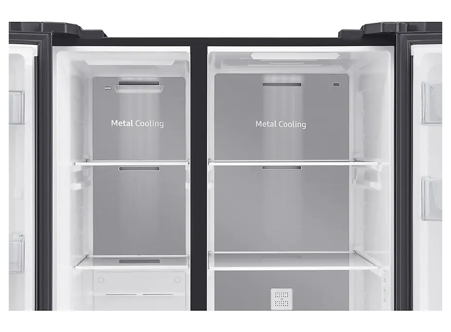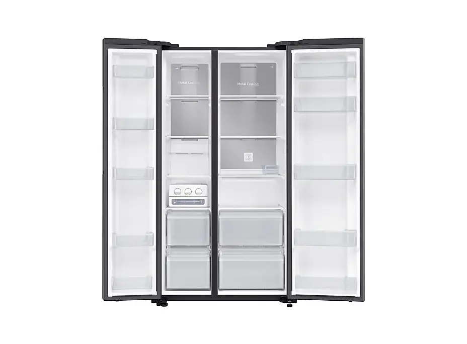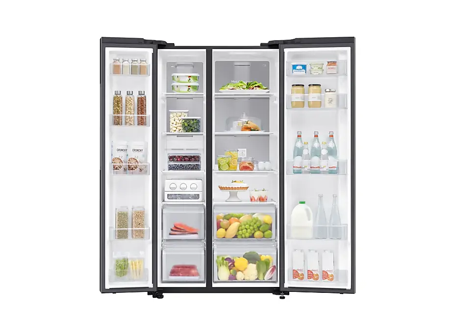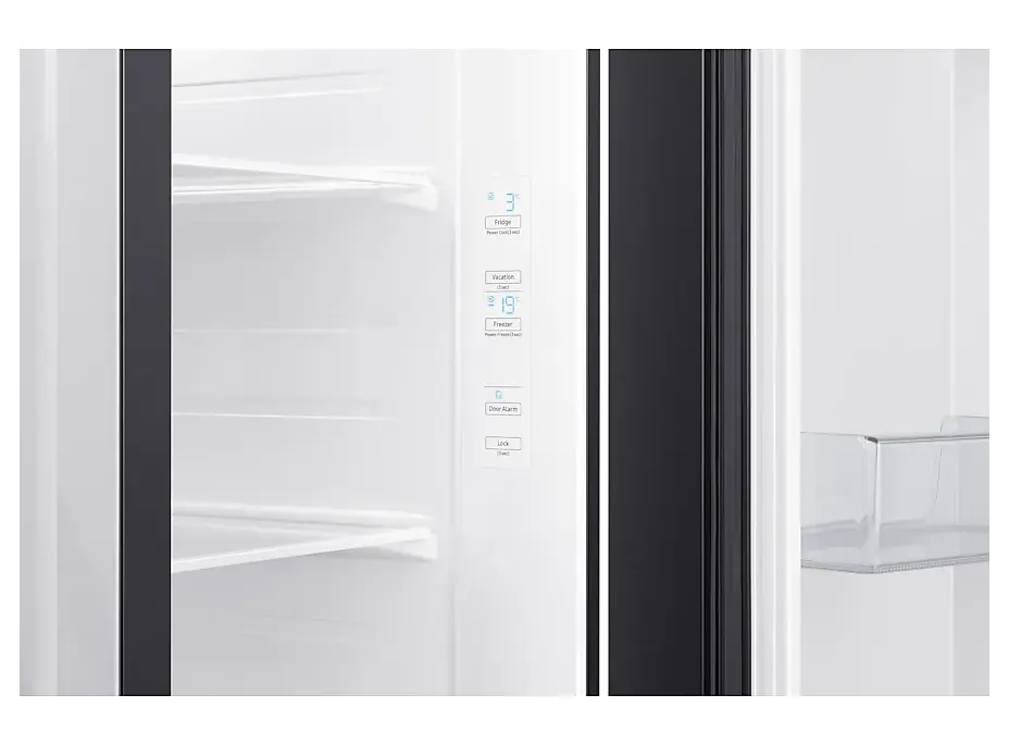 SAMSUNG RS62R5031B4/WT არის ორკამერიანი, Side by Side ტიპის მაცივარი, რომელიც გამოირჩევა დიდი ტევადობითა და თანამედროვე ტექნოლოგიებით. SpaceMax ტექნოლოგია უზრუნველყოფს მეტ შენახვის სივრცეს გარეგანი ზომების შეცვლის გარეშე. Digital Inverter კომპრესორი ეფექტურად მართავს ენერგიის მოხმარებას და უზრუნველყოფს უფრო ხანგრძლივ მუშაობას. Twin Cooling Plus სისტემა ინარჩუნებს საკვების სიგემრსა და არომატს, ცალკე ჰაერის ცირკულაციით მაცივარსა და საყინულეში. დიზაინი შავი შუშის ფრონტით მიანიჭებს სტილს ნებისმიერ სამზარეულოს. იდეალური არჩევანია დიდი ოჯახისთვის ან მათთვის, ვინც აფასებს ფუნქციურობას და ელეგანტურობას.