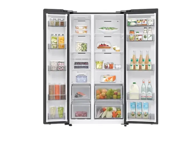 Samsung RS70F65Q1FWR-ს აქვს კაშკაშა დიზაინი და დიდ სივრცეში ორგანიზებული შიდა განლაგება. სრული მოცულობა საშუალებას გაძლევთ შეინახოთ ბევრი პროდუქტი – როგორც ჰაიმ ორგანიზაციისთვის, ისე ოჯახისთვის საჭირო მარაგის შესანახად. Twin Cooling Plus ტექნოლოგია ინარჩუნებს ოპტიმალურ სიგრილესა და გაწმენდას ცალკე პასუხისმგებლოვანი კამერებისთვის. სათავსოები, უჯრები და ფანჯრიანი პროდუქტების გამყოფები უზრუნველყოფს მაქსიმალურ კომფორტს და ადვილ წვდომას. ენერგოეფექტური ინვერტორული კომპრესორი ამცირებს ხმაურს და ენერგიის მოხმარებას. თანამედროვე ტექნოლოგიების წყალობით ეს მაცივარი შესანიშნავია, როგორც ოჯახის, ისე ოფისისთვის – ის აერთიანებს დიდ ზომებს, მოწინავე მუშაობას, მაღალი ხარისხის სუფთა დიზაინსა და მოხმარების ადვილობას.