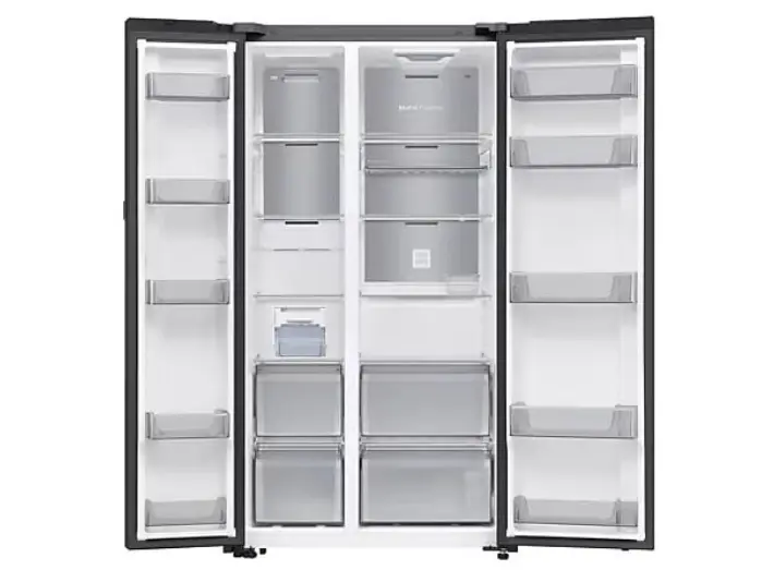 Samsung RS80F65M1BWR / FS Side‑by‑Side არის 680 ლიტრიანი, თანამედროვე დიზაინის მქონე მაცივარი, რომელიც გამოირჩევა სივრცით და ეფექტურობით. მისი ზომები (178×59.5×71.6 სმ) იდეალურია პირდაპირ სამზარეულოსთვის, ხოლო Clean Black ზედაპირი ანათებს ელეგანტურობით და ადვილად იწმინდება. Inverter ტექნოლოგია უზრუნველყოფს ენერგიის დაზოგვას და მუშაობის მაქსიმალურ დუმილს. Twin Cooling+ სისტემა ცალ-ცალკე აკონტროლებს მაცივრისა და ქარის სათავსოების ტემპერატურას, რაც იწვევს კვების პროდუქტების უფრო ხანგრძლივ შენახვას და სითხის ორთქლის დაბალანსებას. Fresh Zone ყინულოვანი განყოფილება შესანიშნავია გახსნილ და სწრაფად ჩასაშრობადი პროდუქტებისთვის. Anti-fingerprint საფარი ხელს უშლის თითის ანაბეჭდებს ზედაპირზე. ეს მაცივარი ‑ სრულყოფილი გადაწყვეტილებაა ოჯახებისთვის, რომლებიც აჩვენებენ ხარისხს, სივრცეს და ინოვაციურ ტექნოლოგიებს.