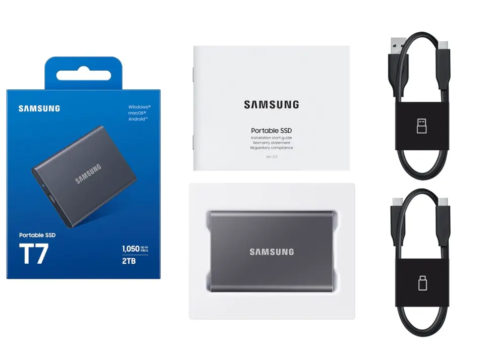 მყარი დისკი Samsung T7 Portable SSD, 2TB External Solid State Drive USB 3.2 Gen 2 Gray