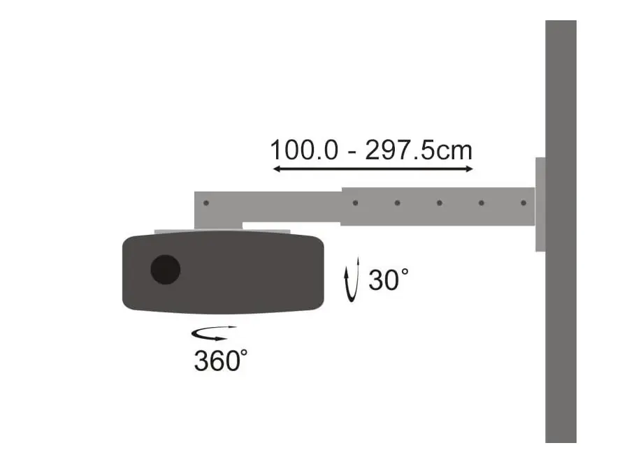 SBOX PM-300-3.0 არის კედლის სამაგრი, რომელიც განკუთვნილია პროექტორების უსაფრთხო და სტაბილური მონტაჟისთვის. მისი რეგულირებადი სიგრძე 1000 მმ-დან 2975 მმ-მდე საშუალებას გაძლევთ მოარგოთ სამაგრი სხვადასხვა სივრცის მოთხოვნებს. სამაგრი უზრუნველყოფს 30° დახრის (Tilt) და 360° ბრუნვის (Swivel) შესაძლებლობებს, რაც საშუალებას გაძლევთ დააყენოთ პროექტორი ოპტიმალურ პოზიციაში. მაქსიმალური დატვირთვის უნარი შეადგენს 15 კგ-ს, ხოლო სამაგრის ხვრელებს შორის მაქსიმალური დაშორება არის 336 მმ, რაც უზრუნველყოფს თავსებადობას სხვადასხვა მოდელის პროექტორებთან. მისი მტკიცე კონსტრუქცია და ხარისხიანი მასალები უზრუნველყოფს ხანგრძლივ გამოყენებას და საიმედოობას.