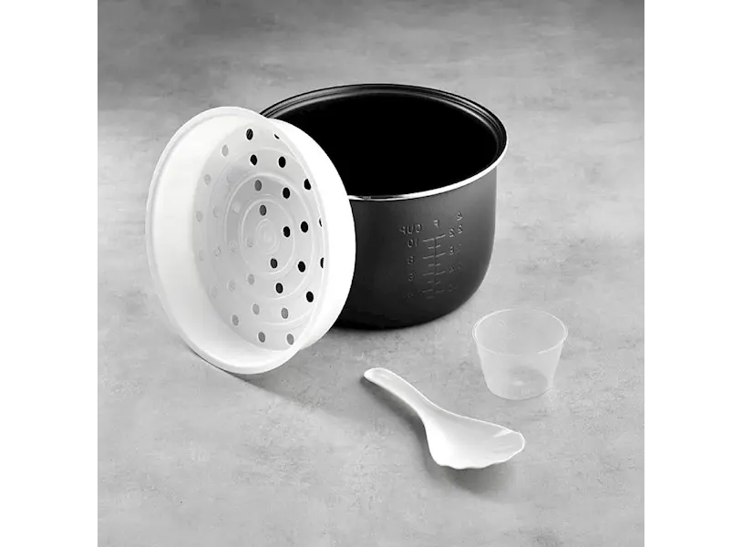 - კოვზი, საზომი ჭიქა, ორთქლზე მოსამზადებელი კონტეინერი