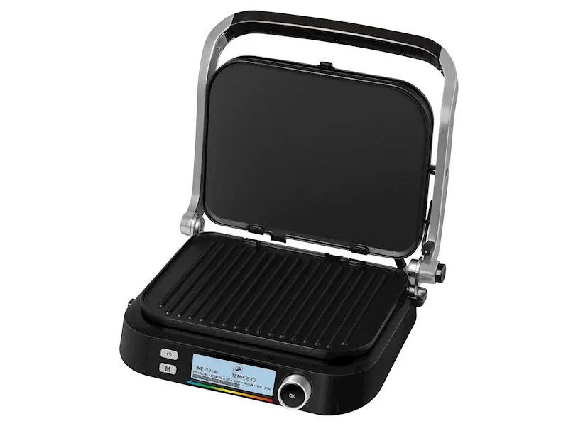 - 7 პროგრამა (ჰამბურგერი, თევზი, სტეიკი, ძეხვი, ქათამი, ბეკონი, გალღობა) + სახელმძღვანელო ტემპერატურის რეგულირებით