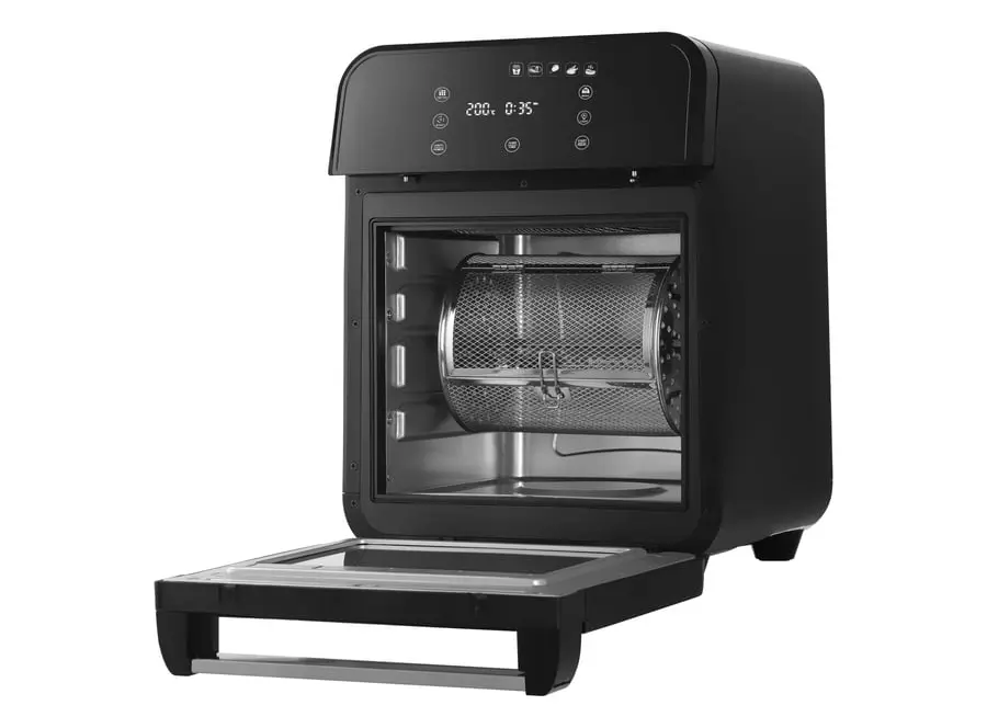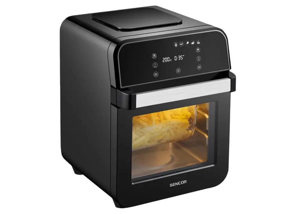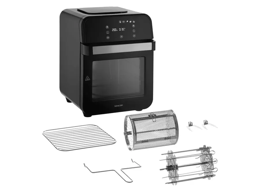 Sencor SFR 5510BK არის მრავალფუნქციური ცხელი ჰაერის ფრისი, რომელიც უზრუნველყოფს ჯანსაღ და ეფექტურ საკვების მომზადებას. მისი 12 ლიტრიანი მოცულობა იდეალურია დიდი პორციების მოსამზადებლად. მოწყობილობა იყენებს ცხელი ჰაერის ცირკულაციას, რაც საშუალებას იძლევა საკვები მოიხარშოს ხრაშუნა ზედაპირით, მინიმალური ან საერთოდ გარეშე ზეთის გამოყენებით. ეს ქმნის ჯანსაღ ალტერნატივას ტრადიციულ ფრაიინგზე. მოწყობილობა აღჭურვილია მოსახერხებელი სენსორული ეკრანით, რომელიც საშუალებას გაძლევთ ზუსტად დაარეგულიროთ ტემპერატურა 60°C-დან 200°C-მდე. 1500 ვატიანი სიმძლავრე უზრუნველყოფს სწრაფ და თანაბარ მომზადებას. დამატებითი ფუნქციები მოიცავს ანტი-სუნის ფილტრს, რომელიც ამცირებს მომზადებისას წარმოქმნილ არასასურველ სუნებს. უსაფრთხოების მიზნით, მოწყობილობა აღჭურვილია გადახურებისგან დაცვის სისტემით და ავტომატური გამორთვის ფუნქციით. კომპლექტში შედის სხვადასხვა აქსესუარები, როგორიცაა გრილის გისოსი, გრილის გალია, შამფურები და ფრაის კალათა, რაც მრავალფეროვნებას სძენს თქვენი კერძების მომზადებას.