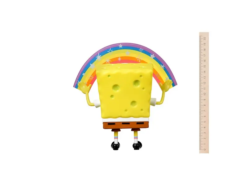 სათამაშო "სპანჯბობი" სათამაშოების კოლექციიდან SpongeBob შედევრი Memes Collection. მულტფილმის პერსონაჟი დამზადებულია სასიამოვნო შეხების პლასტმასისგან, იგი შეფუთულია საკმაოდ ელეგანტურ ყუთში, სადაც აღნიშნულია, რომ ეს არის სათამაშოების 1 სერია. სათამაშოში მხოლოდ ფეხები მოძრაობს, მას შეუძლია თავისით დადგეს. ცისარტყელა მიმაგრებულია მკლავებზე, ცალკე.