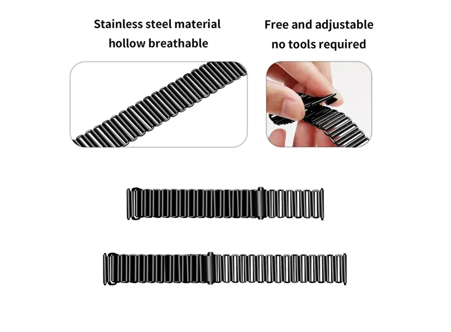 სმარტ საათის სამაჯური Stainless Steel Wrist Band 20mm Adjustable Hollow Watch Strap - Black