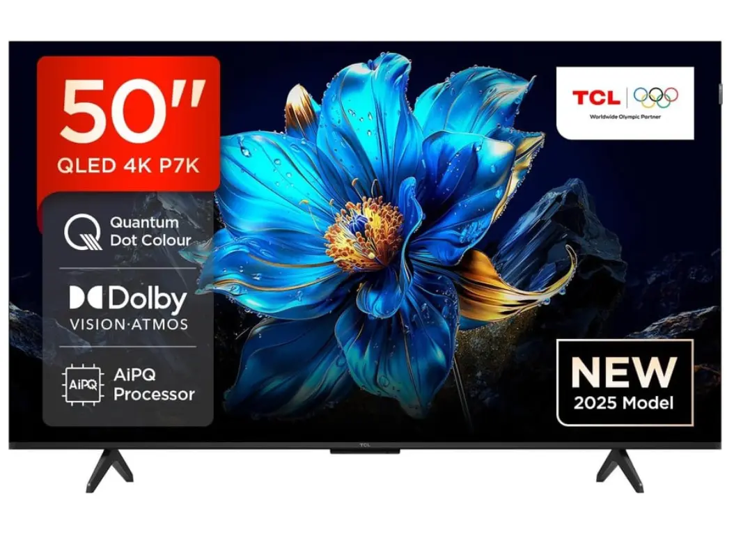 TCL 50P7K არის 50-დიუმიანი QLED ტელევიზორი, რომელიც აერთიანებს 4K UHD რეზოლუციას და HDR10+, Dolby Vision ტექნოლოგიებს, რაც უზრუნველყოფს მაღალი ხარისხის გამოსახულებას. AiPQ პროცესორი აუმჯობესებს ფერებსა და კონტრასტს, ხოლო MEMC ტექნოლოგია უზრუნველყოფს გლუვ მოძრაობას. Dolby Atmos და DTS Virtual:X ტექნოლოგიები ქმნიან სივრცულ ხმას. Google TV ოპერაციული სისტემა უზრუნველყოფს მრავალფეროვან აპლიკაციებს და ხმოვან მართვას Google Assistant-ის მეშვეობით. HDMI 2.1 პორტები, VRR და ALLM ფუნქციები უზრუნველყოფენ თამაშების ოპტიმალურ გამოცდილებას. ტელევიზორი გამოირჩევა თხელი, მეტალის დიზაინით და 350 ნიტის სიკაშკაშით.
