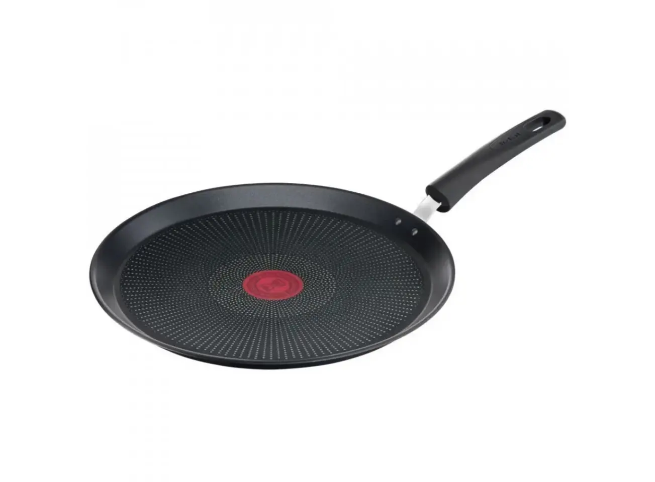 TEFAL G2683872 Ultimate პალაჩინკების ტაფა აერთიანებს ინოვაციურ ტექნოლოგიასა და გამძლე მასალებს, რაც უზრუნველყოფს ხანგრძლივ და ეფექტურ გამოყენებას. 25 სმ დიამეტრის მქონე ტაფა აღჭურვილია TITANIUM 3X არაწებოვანი საფარით, რომელიც გამაგრებულია ტიტანის ნაწილაკებით და უზრუნველყოფს სამჯერ უფრო დიდ გამძლეობას სტანდარტულ საფარებთან შედარებით. THERMO-FUSION™+ ტექნოლოგია უზრუნველყოფს სწრაფ და თანაბარ გათბობას, რაც იძლევა იდეალურ შედეგებს მომზადებისას. THERMO-SIGNAL™ ინდიკატორი გატყობინებთ, როდესაც ტაფა მიაღწევს ოპტიმალურ ტემპერატურას, რაც უზრუნველყოფს სრულყოფილ მომზადებას. ტაფა თავსებადია ყველა ტიპის ქურასთან, მათ შორის ინდუქციურ ქურებთანაც. მისი ერგონომიული დიზაინი და მაღალი ხარისხის მასალები უზრუნველყოფს კომფორტულ და უსაფრთხო გამოყენებას ყოველდღიურ სამზარეულოში.