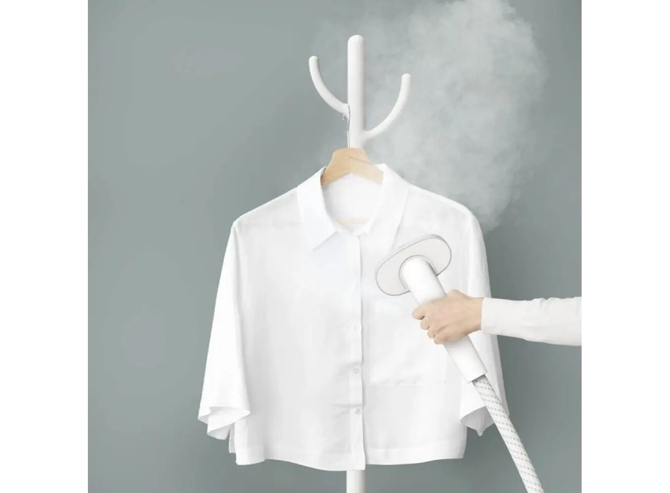 მოწყობილობას გააჩნია ვერტიკალური ორთქლის ფუნქცია, რაც საშუალებას გაძლევთ მარტივად გაუხსნათ ტანსაცმელი ჩამოკიდებულ მდგომარეობაში. დიდი 1.5 ლიტრიანი წყლის რეზერვუარი იძლევა ხანგრძლივი გამოყენების საშუალებას ერთჯერადი შევსებით.