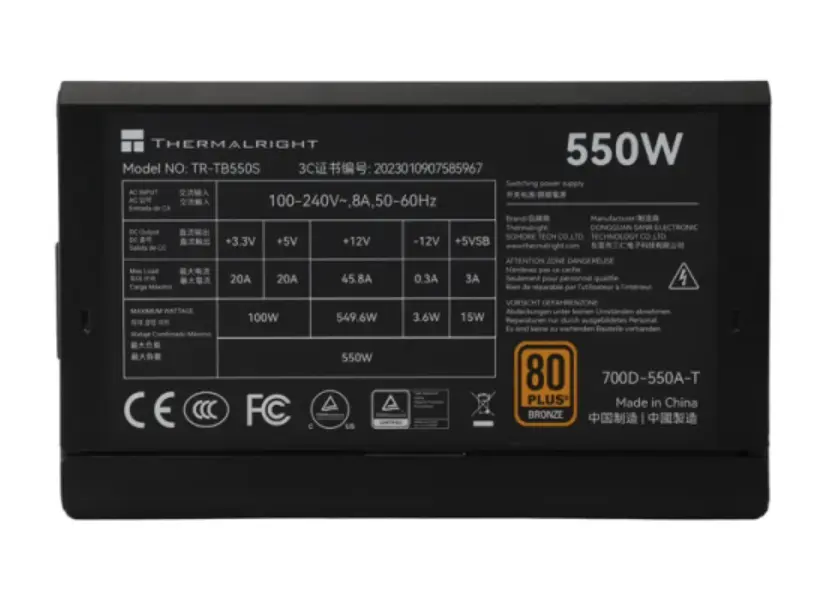 კვების ბლოკი THERMALRIGHT 550W 80 PLUS Bronze - TR-TB-550S