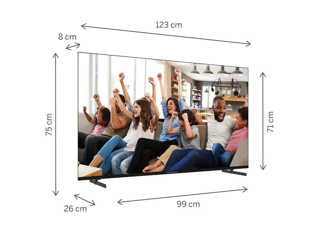 Thomson 55UG4S14 არის 55 დიუმიანი LED ტელევიზორი, რომელიც უზრუნველყოფს 4K UHD რეზოლუციას და შესანიშნავ ვიზუალურ გამოცდილებას. მაღალი დეტალიზაცია, მკვეთრი ფერები და ფართო ხედვის კუთხე იძლევა კომფორტულ ყურების გამოცდილებას როგორც ფილმების, ასევე თამაშების დროს. ინტეგრირებული Smart TV ფუნქციები გაძლევთ წვდომას პოპულარულ აპლიკაციებზე და სტრიმინგ სერვისებზე. Thomson 55UG4S14 აღჭურვილია HDMI, USB, LAN, Wi-Fi და Bluetooth კავშირებით, რაც უზრუნველყოფს მრავალფეროვან კონექტივობას სხვადასხვა მოწყობილობებთან. ელეგანტური და თანამედროვე დიზაინი ვიწრო ჩარჩოებით იდეალურად ერგება ნებისმიერ ინტერიერს.