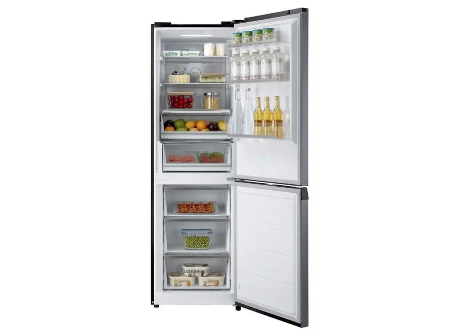 მაცივრის დახვეწილი ნაცრისფერი დიზაინი მარტივად ჯდება თანამედროვე ინტერიერში, ხოლო კომპაქტური ზომები ხდის მას უნივერსალურ გადაწყვეტად ნებისმიერი სივრცისთვის.