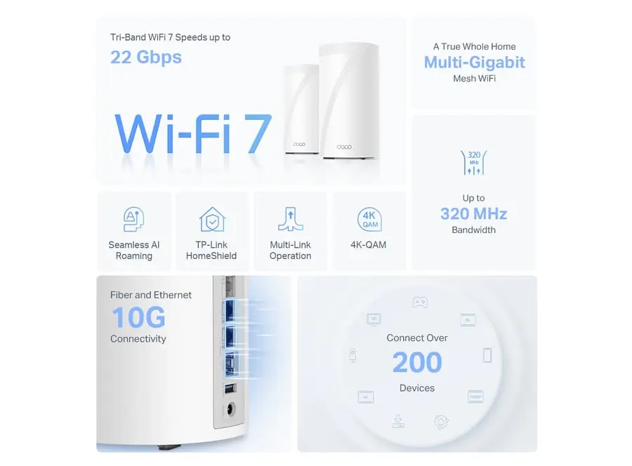 როუტერი TP-link Deco BE85(2-pack) BE19000 Whole Home Mesh Wi-Fi 7 System