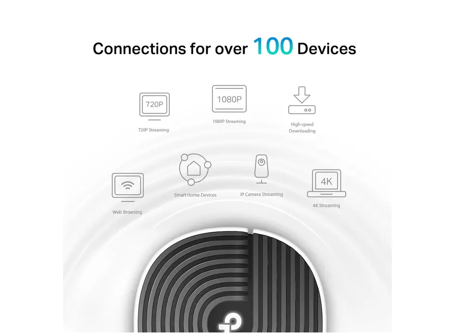 - მონაცემთა უსადენოდ გადაცემის სიჩქარე: 2.4GHz: Up to 300Mbps ; 5GHz: Up to 867Mbps