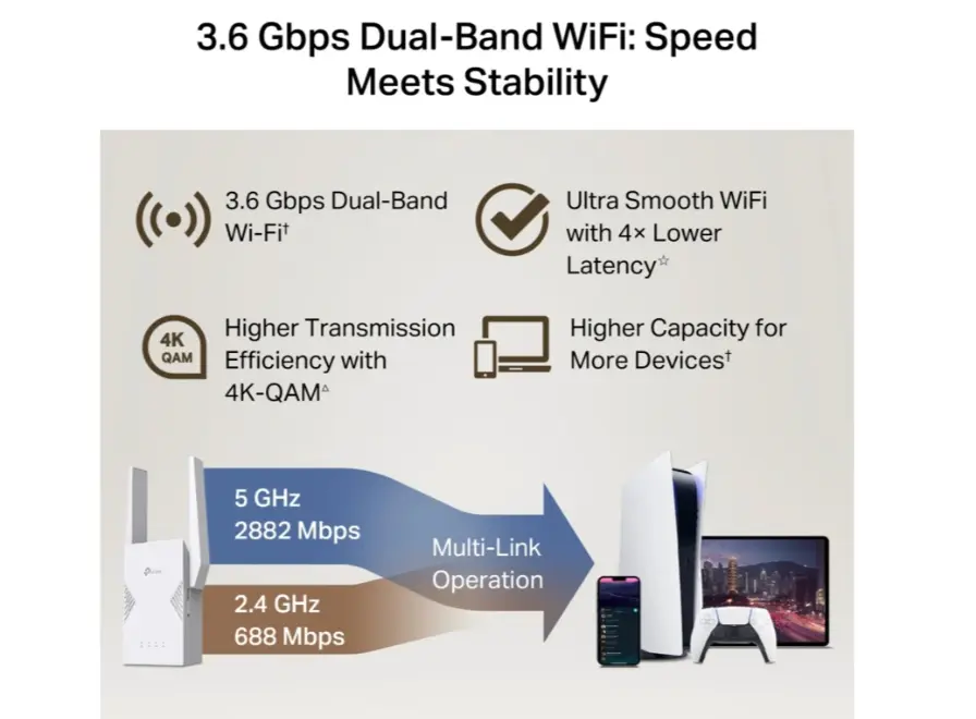 როუტერი TP-Link RE225BE BE3600 Wi-Fi 7 Range Extender