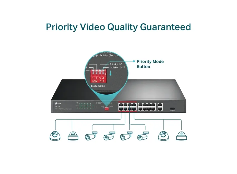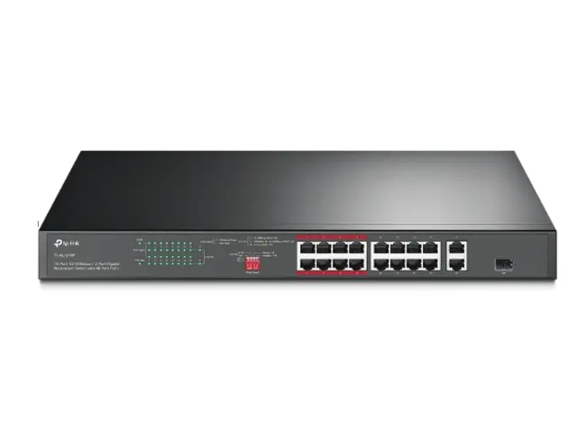 - RJ-45 (LAN): 16× PoE+ 10/100 Mbps RJ45 Ports, 2× 10/100/1000 Mbps RJ45 Ports