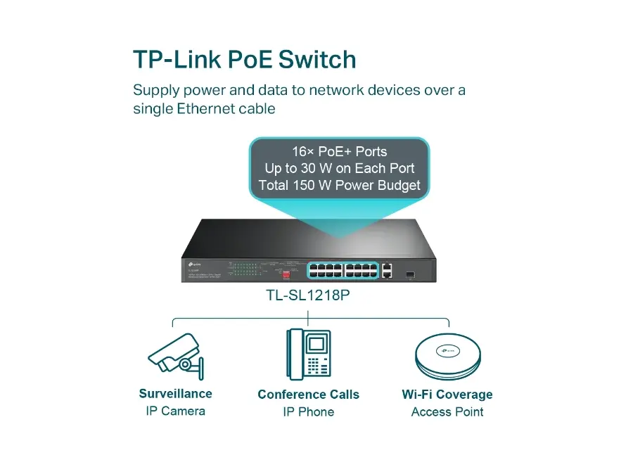 TP-Link TL-SL1218P არის 18-პორტიანი Gigabit Rackmount სვიჩი, რომელიც შექმნილია მცირე და საშუალო ზომის ქსელებისთვის. მოწყობილობა უზრუნველყოფს მაღალ წარმადობასა და სიჩქარეს, რაც აუცილებელია თანამედროვე ქსელური ინფრასტრუქტურისთვის. სვიჩს გააჩნია 16 PoE+ (Power over Ethernet) პორტი, რაც საშუალებას გაძლევთ დააკავშიროთ და დააპროექტოთ ისეთი მოწყობილობები, როგორიცაა IP კამერები, Wi-Fi წვდომის წერტილები და IP ტელეფონები დამატებითი ენერგიის წყაროს გარეშე. მისი მაქსიმალური PoE სიმძლავრე 150 ვატია, რაც იდეალურია ენერგიის დაზოგვისთვის. კომპაქტური დიზაინი და რექმაუნტ ფორმ-ფაქტორი უზრუნველყოფს მარტივ ინსტალაციას და ინტეგრაციას სხვადასხვა ქსელურ გარემოში. TP-Link TL-SL1218P გამოირჩევა მოწინავე უსაფრთხოების ფუნქციებით და სანდოობით, რაც უზრუნველყოფს ქსელის სტაბილურ და უსაფრთხო მუშაობას.