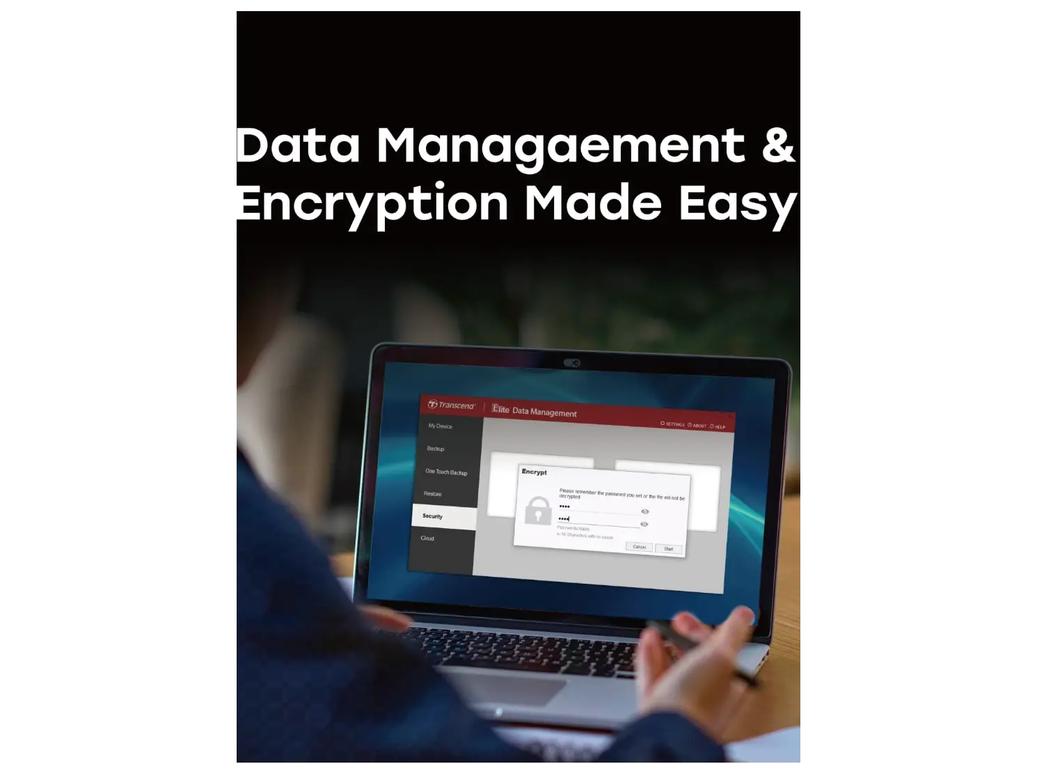 - მონაცემთა დაცვა: მხარს უჭერს Transcend Elite პროგრამას, რომელიც საშუალებას გაძლევთ დაშიფროთ ფაილები და შექმნათ სარეზერვო ასლები ერთი დაჭერით.