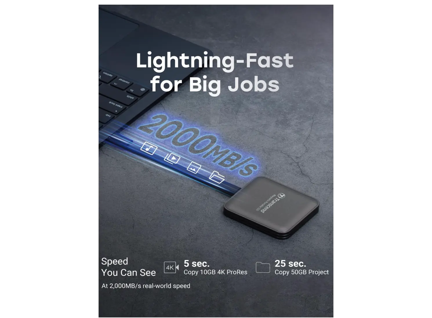 - ულტრა-მაღალი სიჩქარე: აღჭურვილია USB 20Gbps (USB 3.2 Gen 2x2) ინტერფეისით. მონაცემთა გადაცემის სიჩქარე წაკითხვისა და ჩაწერისას აღწევს 2000 მბ/წმ-ს.