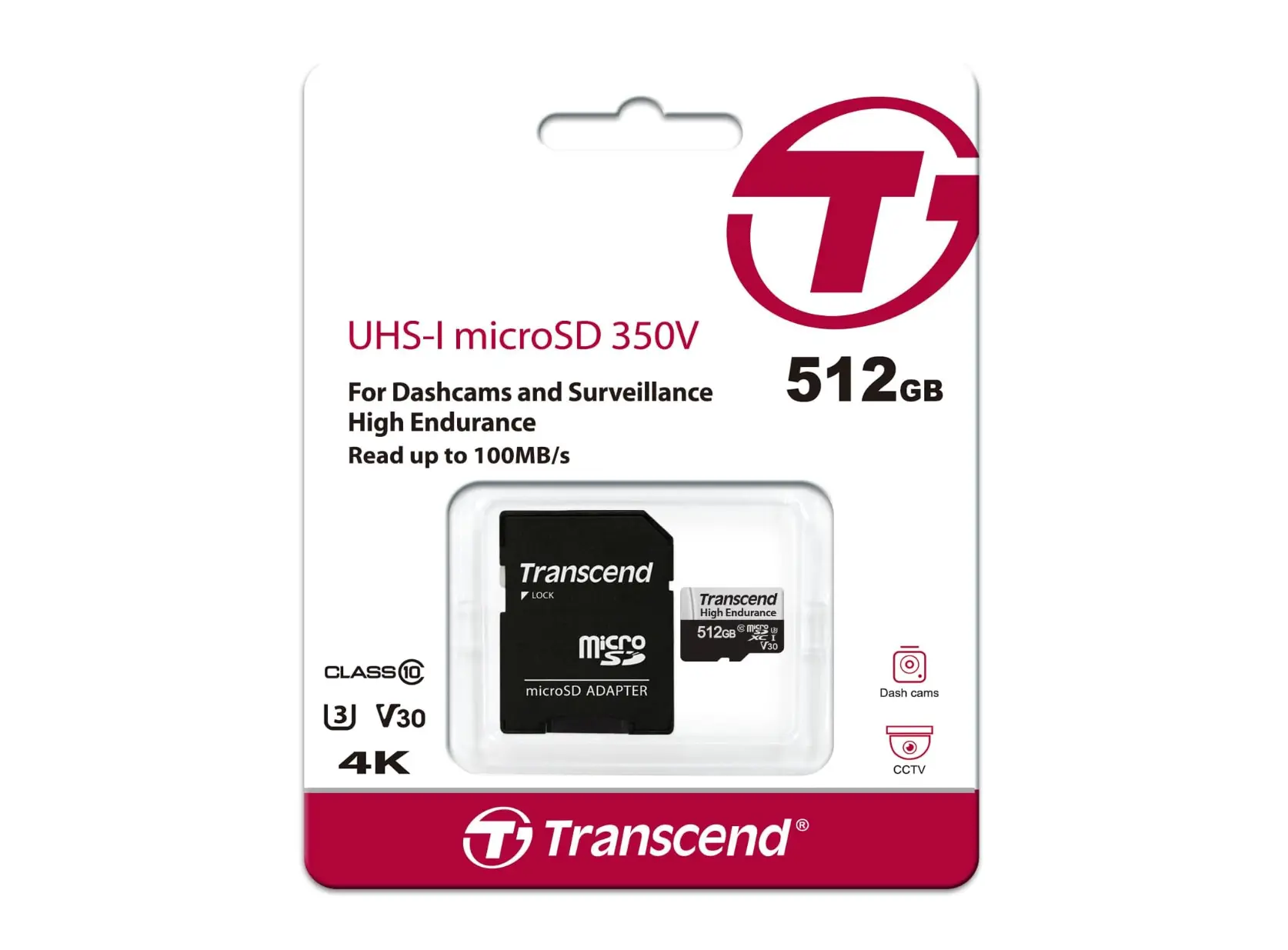 მეხსიერების ბარათი Transcend 512GB microSD w/ adapter U1, High Endurance