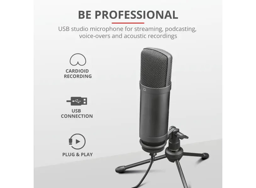Trust GXT 252+ Emita Plus არის პროფესიონალური USB სტუდიური მიკროფონი, რომელიც უზრუნველყოფს მაღალი ხარისხის აუდიოჩაწერას სტრიმინგისთვის, პოდკასტინგისთვის და ხმის ჩაწერისთვის. მისი კარდიოიდული მიმართულების ჩაწერის მახასიათებელი უზრუნველყოფს ხმების ზუსტ ჩაწერას მიკროფონის წინა მხრიდან, ამცირებს ფონურ ხმაურს და უზრუნველყოფს სუფთა და მკვეთრ ხმას. მიკროფონს მოყვება რეგულირებადი სამაგრი, შოკ-მაუნტი, ორმაგი პოპ ფილტრი და სამმაგი სტენდი, რაც უზრუნველყოფს სტაბილურობასა და კომფორტს გამოყენებისას. USB კავშირი უზრუნველყოფს მარტივ და სწრაფ ინსტალაციას PC, Mac და PlayStation მოწყობილობებთან. მიკროფონის სიხშირის დიაპაზონი არის 18Hz-21kHz, მგრძნობელობა -35dB, ხოლო სიგნალ-ხმაურის თანაფარდობა 81dB, რაც უზრუნველყოფს მაღალი ხარისხის აუდიოჩაწერას.