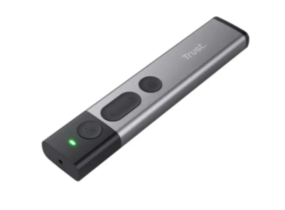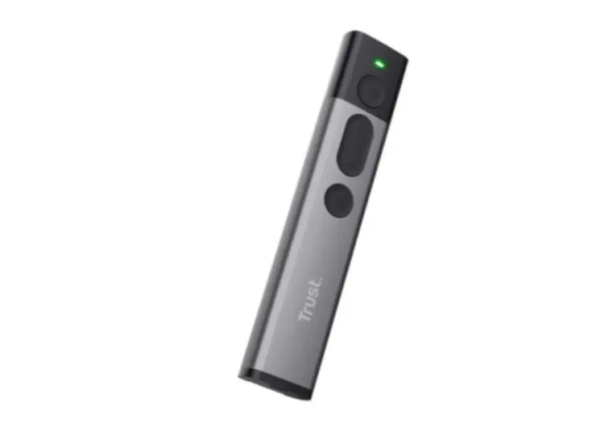 Trust Kazun Wireless Presenter – ეს არის თანამედროვე და ელეგანტური პრეზენტაციის პულტი, რომელიც შექმნილია პროფესიონალური პრეზენტაციების მარტივად და ეფექტურად წარმართვისთვის. ალუმინის კორპუსი უზრუნველყოფს გამძლეობასა და კომფორტს, ხოლო მისი კომპაქტური დიზაინი საშუალებას გაძლევთ მარტივად გადაიტანოთ იგი ნებისმიერ ადგილას.პრეზენტერი აღჭურვილია ოთხი ძირითადი ფუნქციით: შემდეგი სლაიდი, წინა სლაიდი, პრეზენტაციის დაწყება/შეჩერება და შავი ეკრანი. ინტეგრირებული წითელი ლაზერის მაჩვენებელი დაგეხმარებათ ყურადღების გამახვილებაში პრეზენტაციის მნიშვნელოვან დეტალებზე.