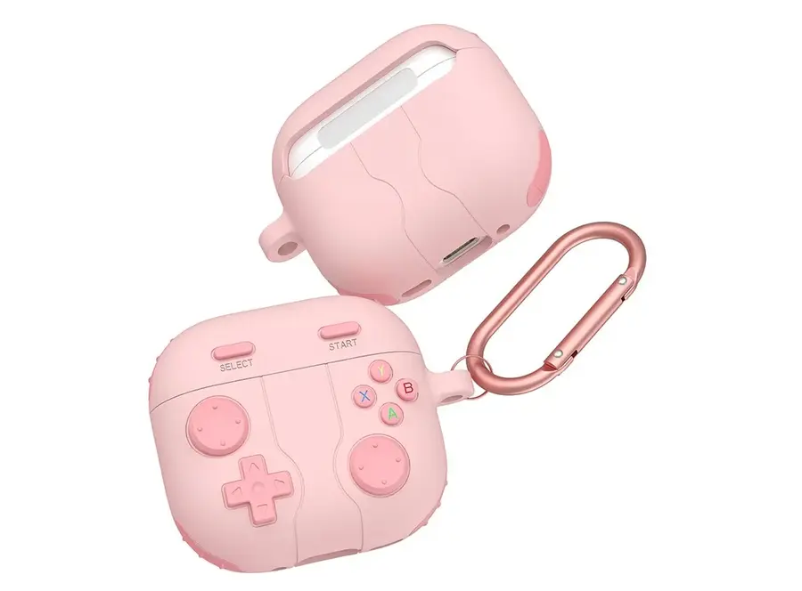 ყურსასმენის ქეისი TVC AirPods 4 Case Game Console Shape Earphones Silicone Shell with Carabiner - Pink