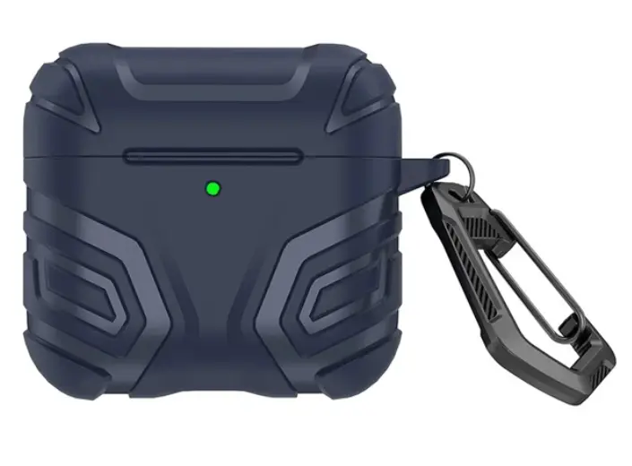 ყურსასმენის ქეისი TVC AirPods 4 Case Split Design Soft TPU Shockproof Earphone Cover with Carabiner - Dark Blue