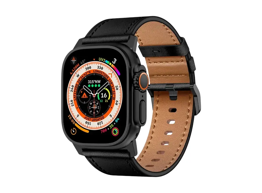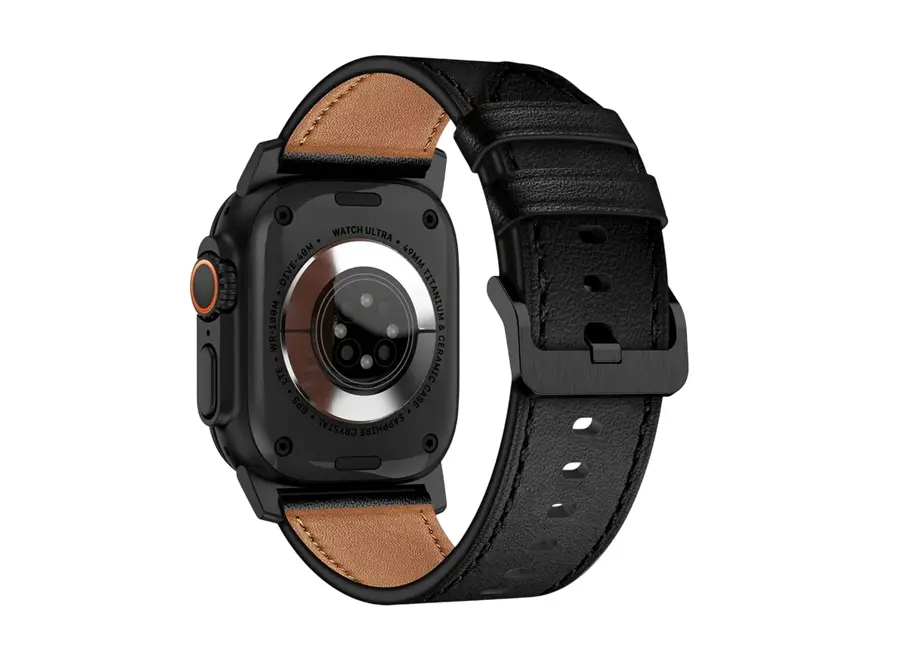 სმარტ საათის სამაჯური TVC Apple Watch 10 46mm / Ultra 2 / Ultra 49mm / 9 8 7 45mm / SE (2023) SE (2022) SE 6 5 4 44mm / 3 2 1 42mm Genuine Cow Leather Band - Black