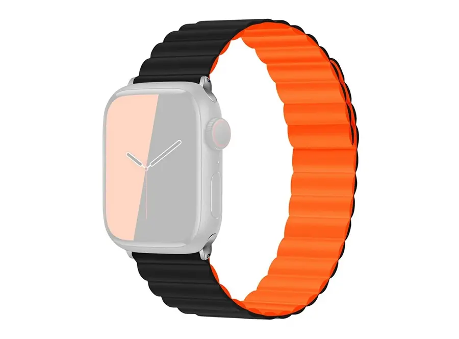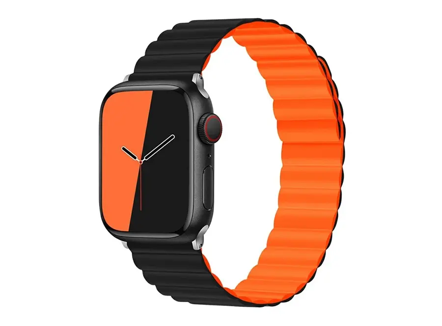 სმარტ საათის სამაჯური TVC KALEBOL Magnetic Watch Band for Apple Watch Series 10 9 8 7 SE 6 5 4 3 2 1 42mm 41mm 40mm 38mm Silicone Adjustable Strap - Black Orange