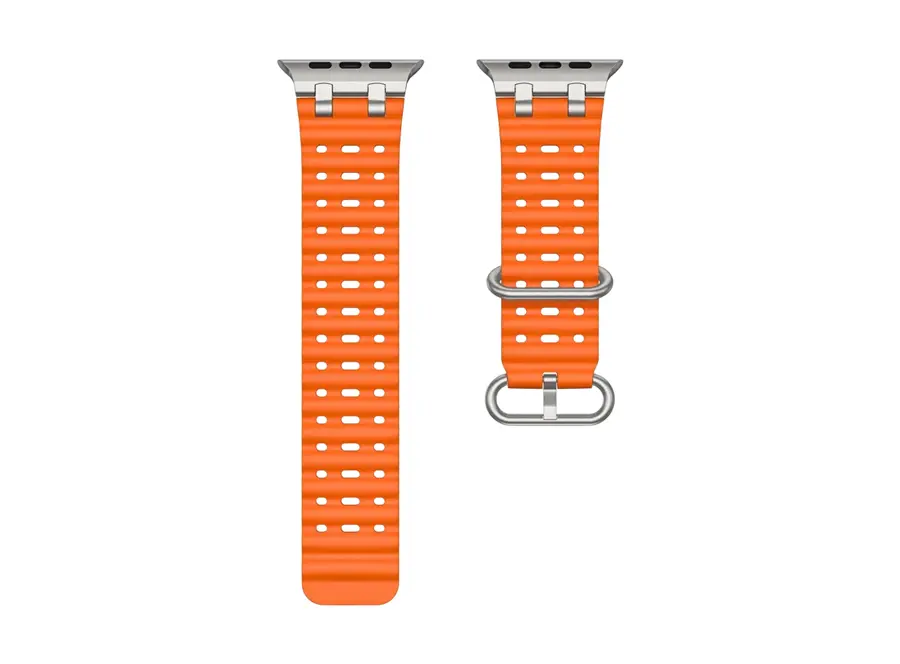 სმარტ საათის სამაჯური TVC Ocean Watch Strap for Apple Watch Series 10 Ultra 9 8 7 SE 6 5 4 3 2 1 46mm 49mm 45mm 44mm 42mm Silicone Band - Orange+Silver Buckle