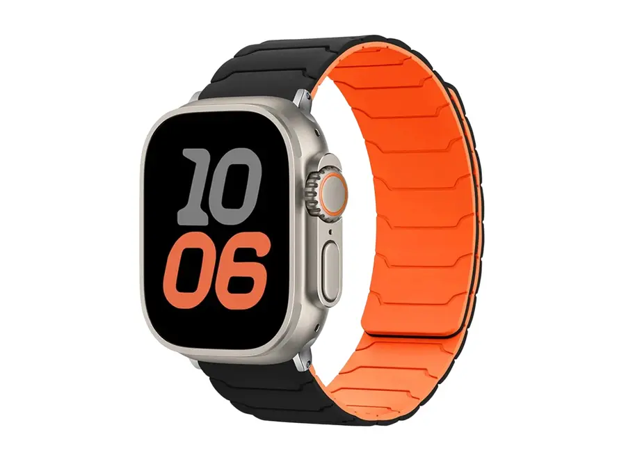 სმარტ საათის სამაჯური TVC Silicone Strap for Apple Watch Series 10 Ultra 9 8 7 SE 6 5 4 3 2 1 46mm 49mm 45mm 44mm 42mm Magnetic Band - Black+Orange