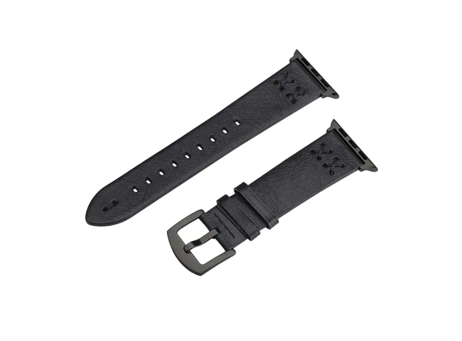 სმარტ საათის სამაჯური TVC Watch Strap for Apple Watch Series 10 9 8 7 SE 6 5 4 3 2 1 42mm 41mm 40mm 38mm Hand Stitched Lines Genuine Cow Leather Band - Black