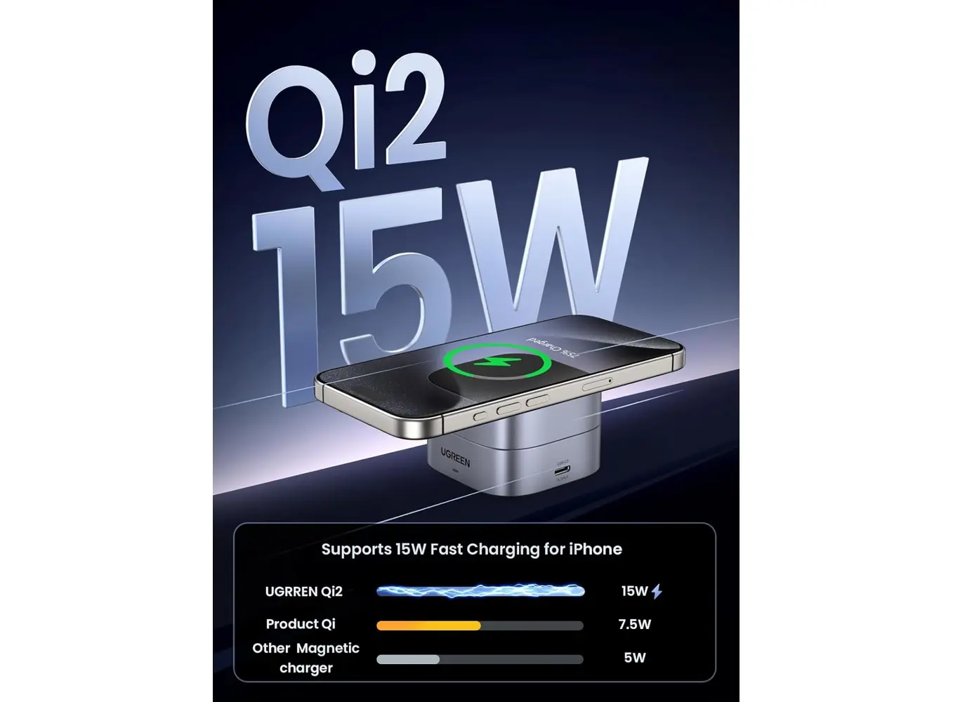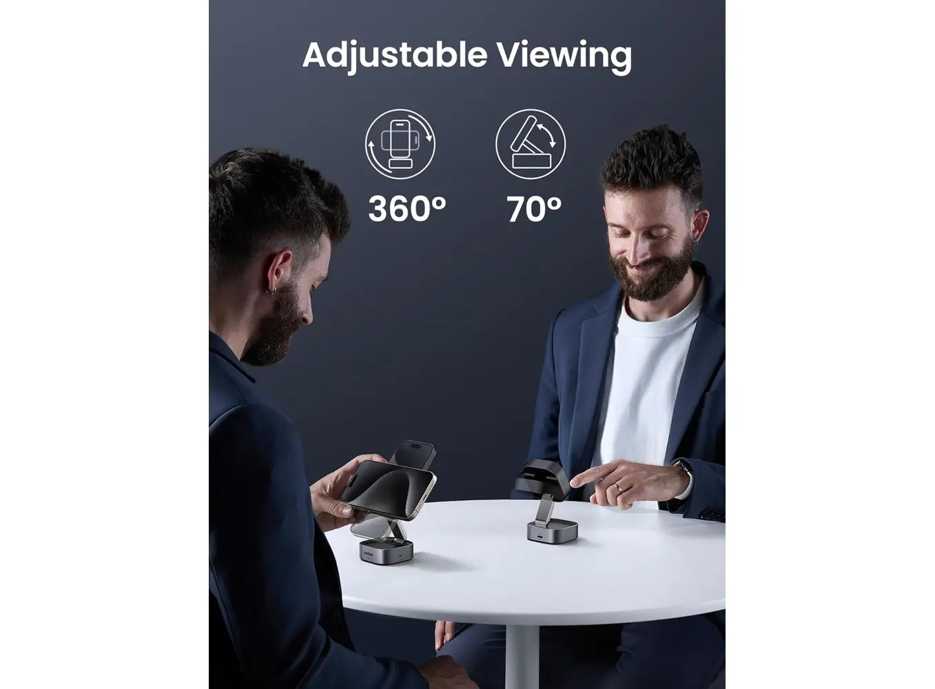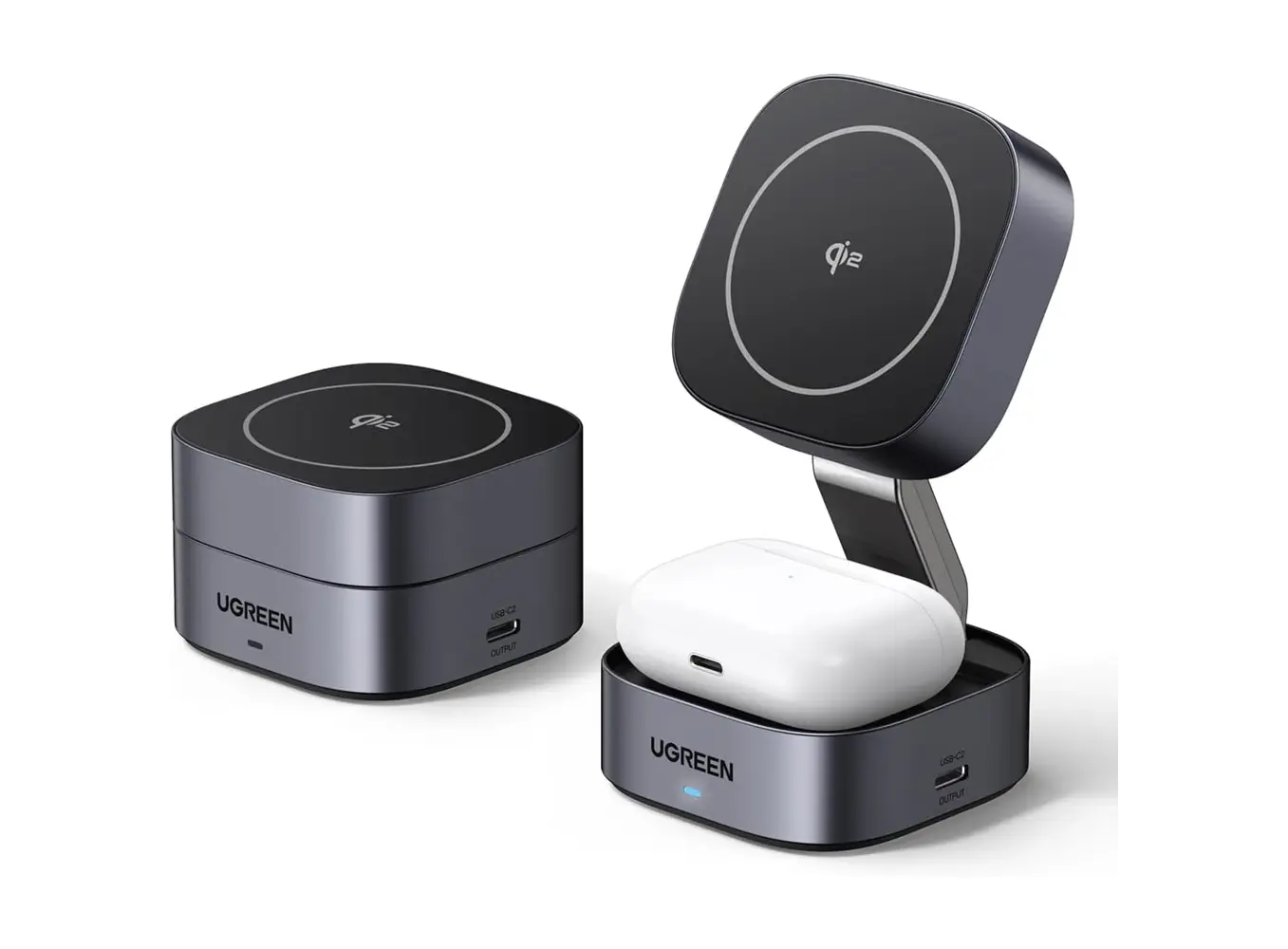 უსადენო დამტენი UGREEEN W702 (35316) MagFlow Qi2, 25W, Magnetic Foldable Charging Station, Dark Gray
