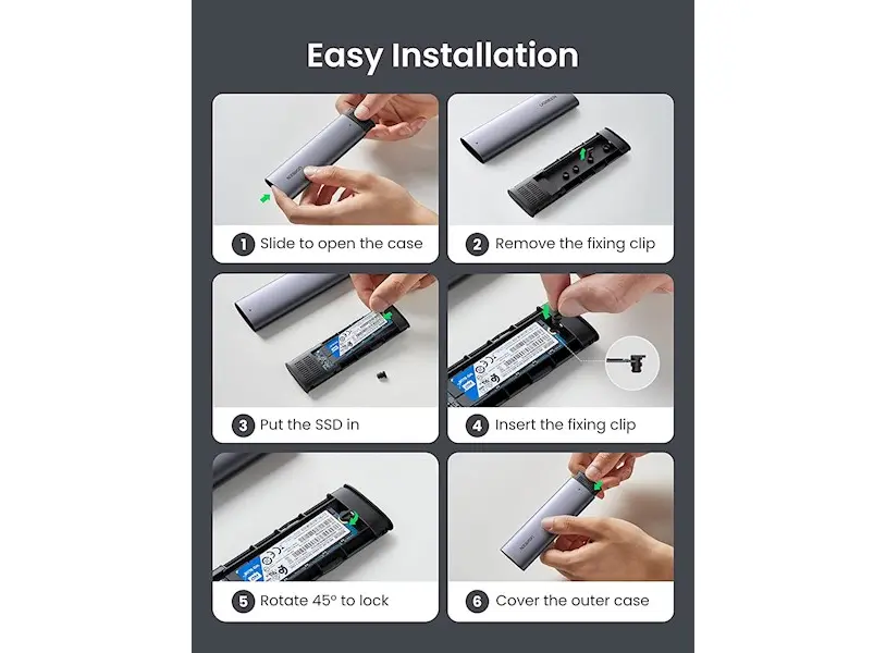 გარე მყარე დისკის ჩასადები UGREEN 10903 USB-C to M.2 NGFF 5G Enclosure არის ინოვაციური და კომფორტული მოწყობილობა, რომელიც საშუალებას გაძლევთ M.2 NGFF SSD დისკი მარტივად გადააქციოთ გარე საცავ მოწყობილობად. მისი USB-C პორტი უზრუნველყოფს 5Gbps მონაცემთა გადაცემის სიჩქარეს, რაც იდეალურია სწრაფი და ეფექტური ფაილების გადაცემისთვის. 50 სმ A to C კაბელი აძლიერებს მოხმარების მოქნილობას და კომფორტს. მისი კომპაქტური და გამძლე დიზაინი იცავს SSD-ს დაზიანებისგან და ადვილად სატარებელს ხდის. UGREEN 10903 შესანიშნავი არჩევანია როგორც პროფესიონალებისთვის, ისე ყოველდღიური გამოყენებისთვის.