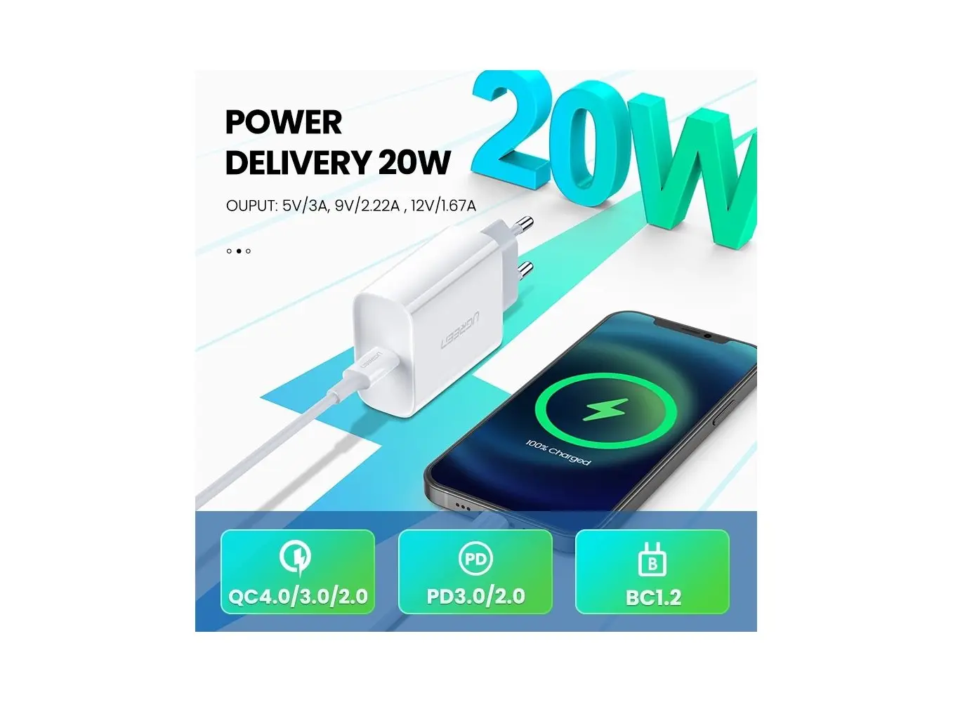 ადაპტერი UGREEN (60450) CD137 Fast Charging Port 20W