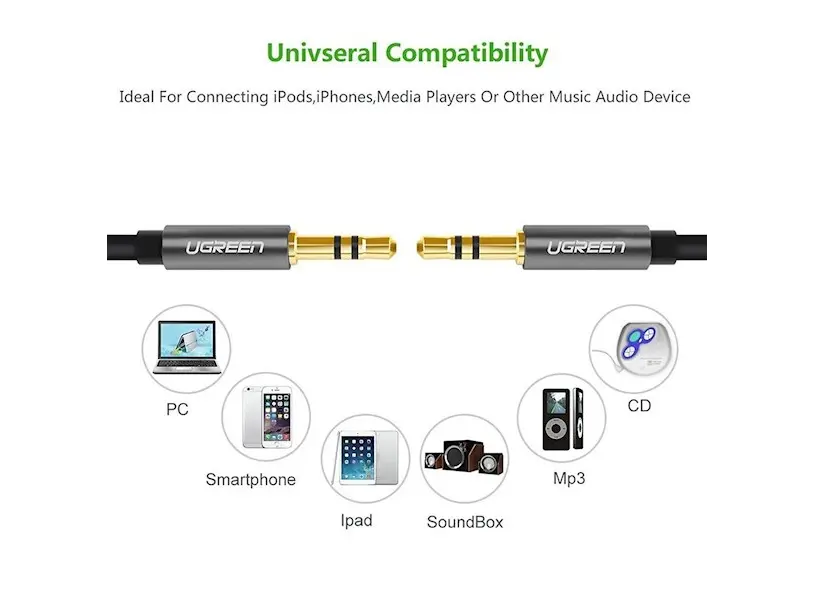 აუდიო კაბელი UGREEN AV119 (10734) 3.5mm Male to 3.5mm Male Audio Cable 1.5M AUX