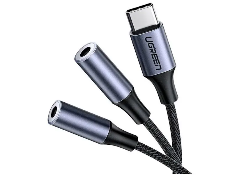 აუდიო ადაპტერი UGREEN AV144 (30732), Type C Male To 2x3.5 mm Female, Audio Cable, 25cm, Space Gray