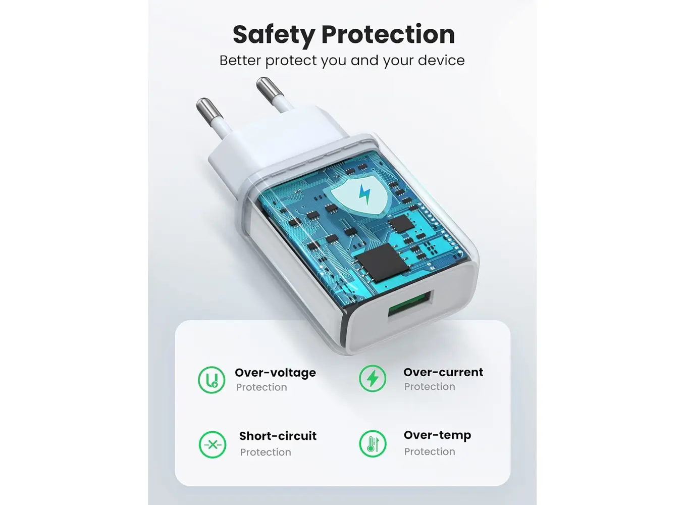 მობილურის დამტენი UGREEN CD122 (10133), 18W, USB Fast Charger, White