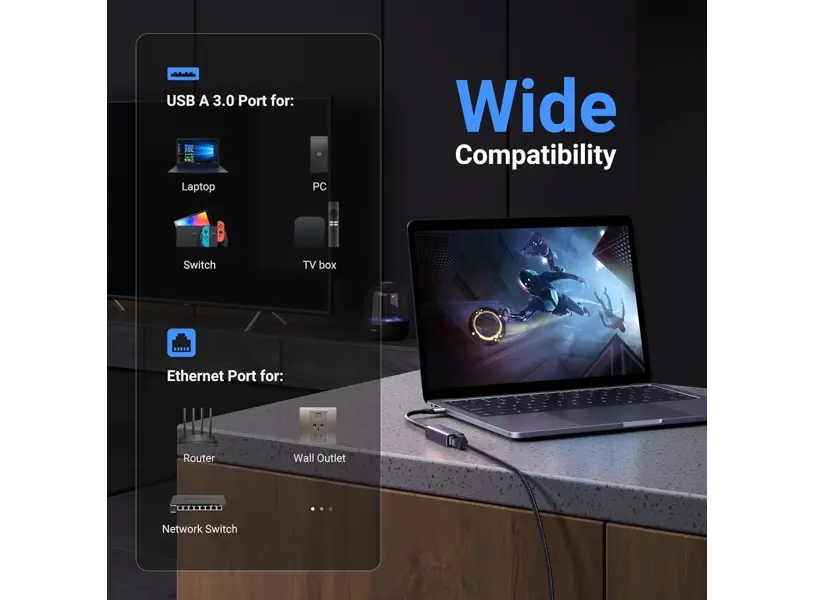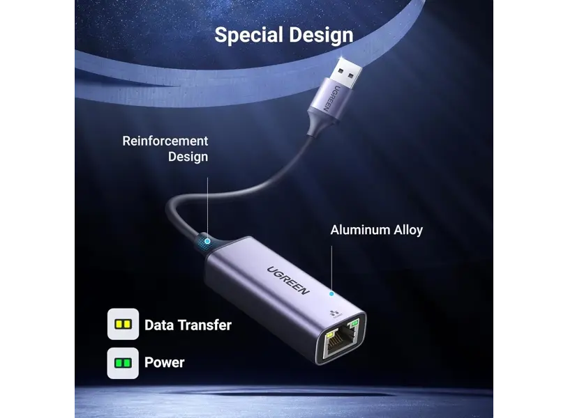 UGREEN CM209 USB 3.0 to RJ45 Ethernet ადაპტერი გთავაზობთ სწრაფ და სტაბილურ კავშირს ქსელთან, როდესაც მოწყობილობას არ აქვს ჩაშენებული Ethernet პორტი. USB 3.0 ტექნოლოგია უზრუნველყოფს მონაცემების გადაცემის მაღალ სიჩქარეს — 10/100/1000 Mbps, რაც იდეალურია ვიდეოს ტრანსლაციისთვის, ონლაინ თამაშისთვის ან ფაილების გადაცემისთვის. ადაპტერი Plug & Play პრინციპით მუშაობს და არ საჭიროებს დამატებით დრაივერებს თანამედროვე ოპერაციულ სისტემებზე. კომპაქტური და ელეგანტური დიზაინი Space Gray ფერში იდეალურად ერგება ლეპტოპებსა და სხვა მოწყობილობებს. იდეალურია როგორც ოფისში, ისე სახლში გამოყენებისთვის.