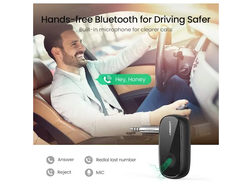 აუდიო ადაპტერი UGREEN CM279 (70304) Bluetooth 5.0 Receiver Audio Adapter APTX with Mic, Black