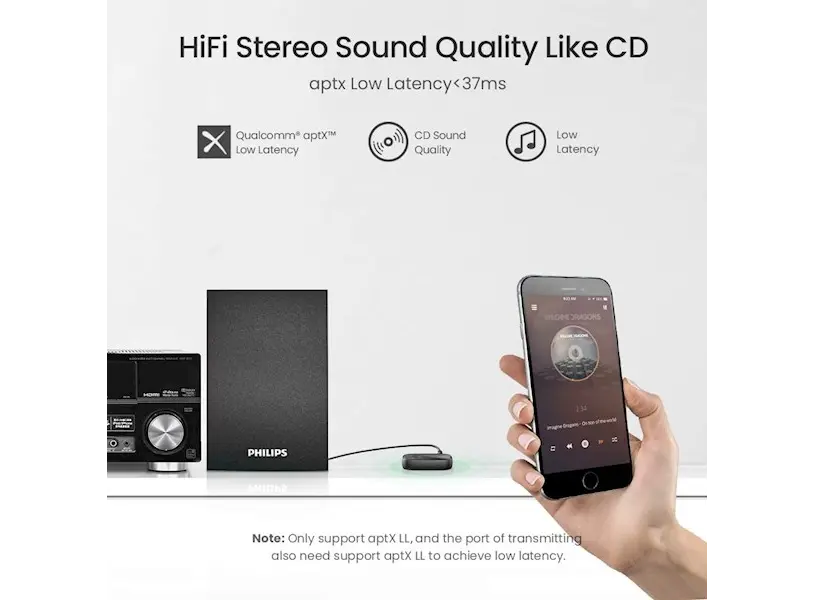 - HiFi ხარისხი, მხარს უჭერს SBC, AAC, aptX, aptX LL